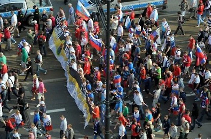 Итак 12 июня на Евро-2012 должны были встретиться национальные сборные России и Польши. Всероссийское общество болельщиков (ВОБ) и Российский футбольный союз (РФС) согласовали перед матчем проведение Русского марша — российские болельщики должны были пройтись до Национального стадиона в Варшаве, скандируя кричалки и с российскими триколорами и "имперками" наперевес. Звучит не особо страшно.