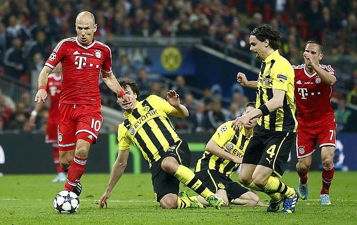 В 1997 году Германия стала первой страной, представленной в Лиге Чемпионов сразу тремя командами. Дортмундская «Боруссия» попала в турнир как его действующий победитель, «Бавария» – как чемпион Германии, а леверкузенский «Байер» – как серебряный призер национального чемпионата. «Бавария» и «Боруссия» автоматически попали в групповой этап, а вот «Байер» стартовал во втором отборочном раунде. Клуб уверенно прошел тбилисское «Динамо», разгромив соперника 6-1 в домашней игре и позволив себе проиграть 0-1 в Тбилиси. Все три клуба прошли в плей-офф. «Боруссия» выиграла пять из шести матчей в группе с «Пармой», «Спартой» и «Галатасараем». «Бавария» выиграла квартет с ПСЖ, «Бешикташем» и «Гетеборгом». А вот «Байер» занял второе место в компании с «Монако», «Спортингом» и «Льерсом», но попал в число двух лучших команд, занявших в своих группах вторые места. Так получилось, что уже в четвертьфинале жребий свел «Баварию» и «Боруссию». Действующий победитель Лиги Чемпионов в упорной борьбе прошел дальше. «Байер» уступил 1-4 по сумме двух игр «Реалу». «Королевский клуб» вслед за «Байером» взял верх в полуфинале над «Боруссией», 2-0 по сумме двух матчей. В итоге «Реал» стал победителем турнира, обыграв в финале со счетом 1-0 туринский «Ювентус».