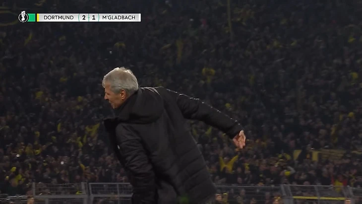 Холанд вышел на поле на 61-й минуте и забил на пятой (!) добавленной. Аканджи навесил в штрафную, норвежец головой закинул мяч в угол. Тренер «Боруссии» Люсьен Фавр от радости поскакал по бровке, но так перестарался, что повредил голеностоп.