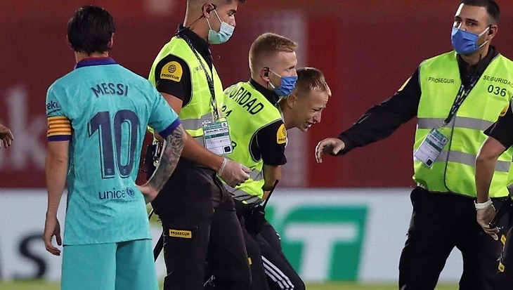 Вчера во время матча "Мальорки" и "Барселоны" на поле выбежал фанат. Позже у него спросили мотивы его действий