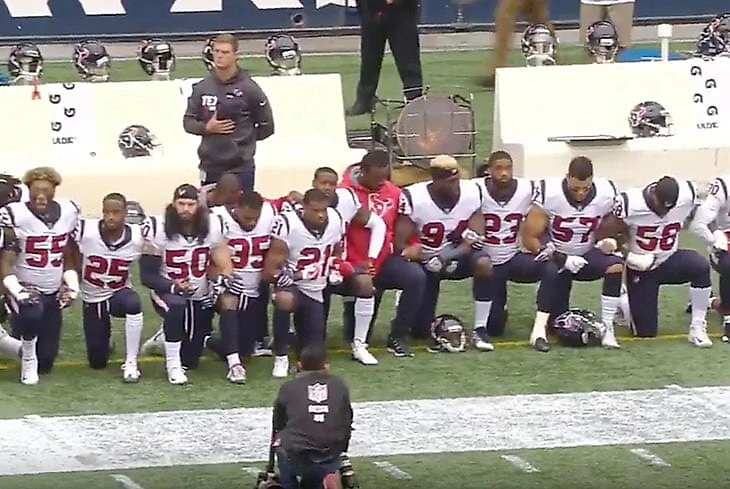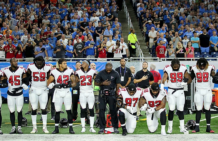 Все началось в августе 2016-го. Во время предсезонных игр квотербек Колин Каперник (игравший тогда за «Сан-Франциско») демонстративно остался сидеть на скамейке запасных во время исполнения национального гимна.