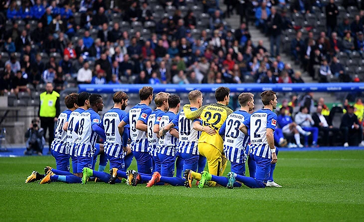 Протесты быстро докатились до Европы. Форвард «Гладбаха» Маркус Тюрам опустился на колено после гола «Униону», игроки «Дортмунда» образовали сердце. Впрочем, в Бундеслиге садились на колено еще до того, как это стало мейнстримом. В октябре 2017-го футболисты «Герты» поддержали игроков НФЛ перед матчем с «Шальке». Клубный твиттер тогда писал: «Герта» выступает за терпимость и ответственность. За толерантный Берлин и открытый мир, сейчас и навсегда!»