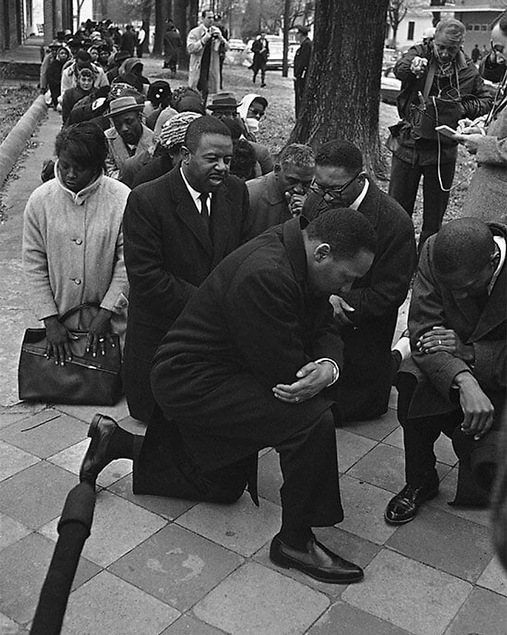 Бойер предложил садиться на колено, как это делают ветераны на кладбище в знак уважения к погибшим на войне сослуживцам. Нейт также покопался в документах и наткнулся на фото Мартина Лютера Кинга, преклонившего колено на протесте за гражданские права в Сельме (Алабама) в 1965 году.