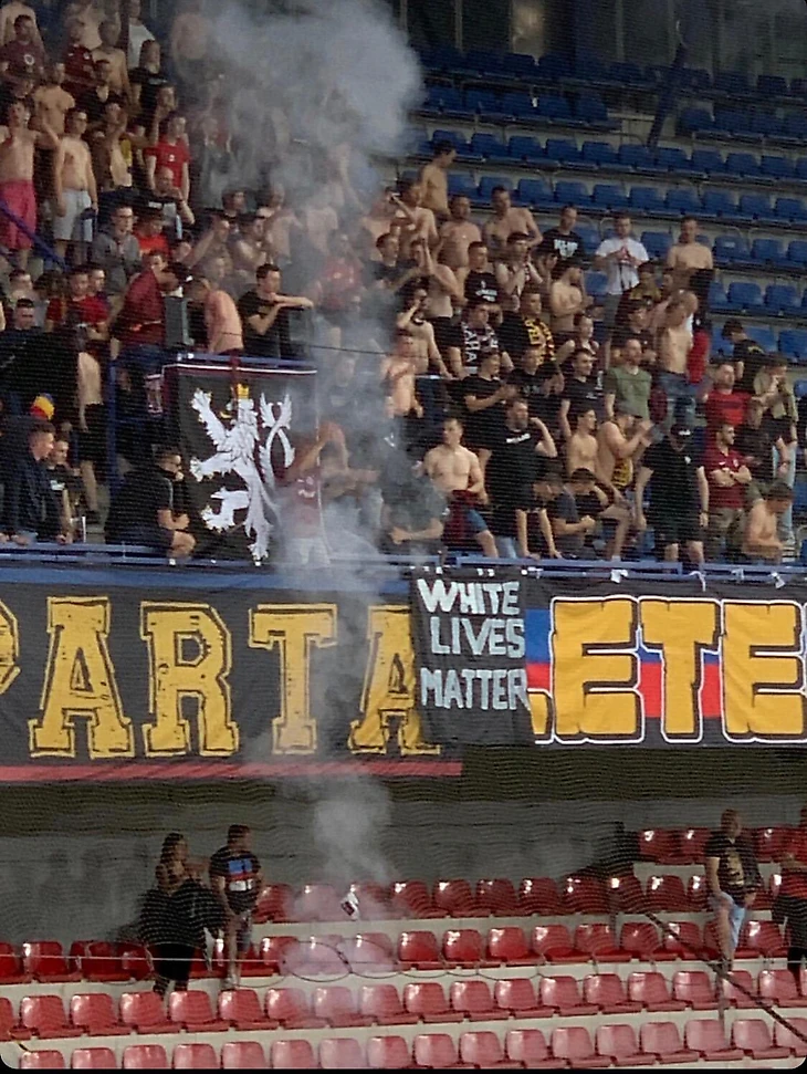 Вчера в Праге состоялся кубковый полуфинал, в котором местная Спарта принимала Викторию из Пльзени. На трибунах собралось около 2 тысяч человек. Особое внимание на себя обратил фанатский сектор пражан. Во-первых, фанаты Спарты отметились на игре довольно ярким пирошоу, что само по себе является редкостью в наше посткоронавирусное время. А во-вторых, почти весь матч на заворотной трибуне провисел текстовик WhiteLivesMatter ("Жизни белых имеют значение"), нарисованный очевидно в пику популярному сейчас движению BlackLivesMatter ("Жизни чёрных имеют значения").