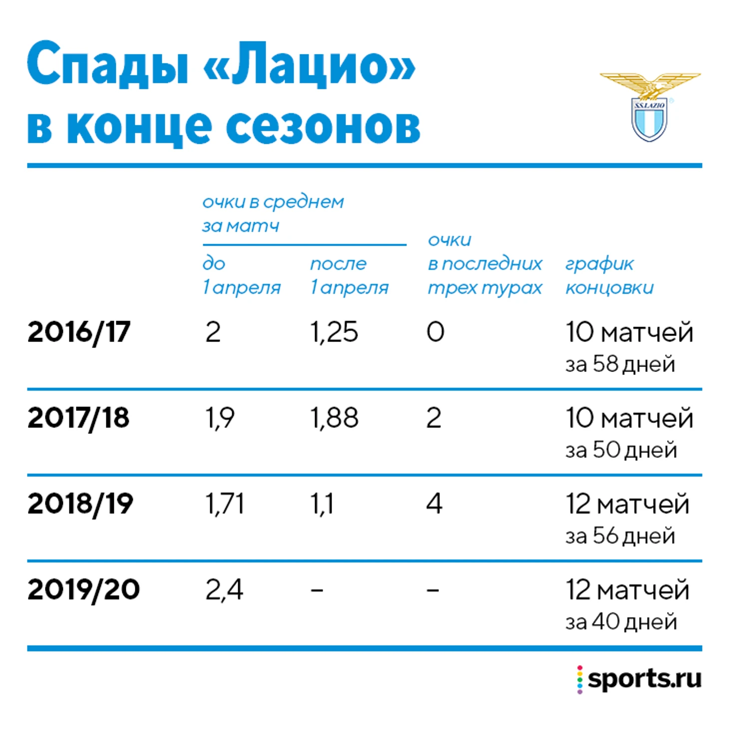 Вероятно, он не имел в виду ничего больше сказанного, но тоскливая сослагательность удачно описывает ситуацию. «Лацио» выдал 21-матчевую беспроигрышную серию и реально претендовал на скудетто, пока пандемия не сжала концовку сезона в полтора жарких месяца. Теперь неважно, как близко римляне подобрались к «Юве». Через месяц они почти наверняка вылетят из чемпионской гонки.
