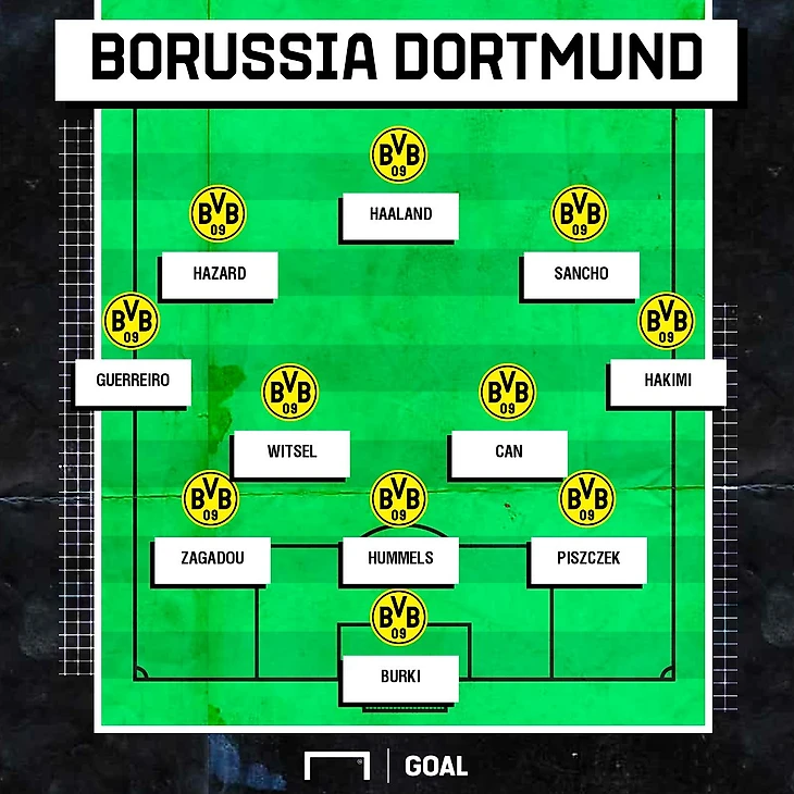 Вернёмся к схеме Дортмунда. Мы видим, что в схеме Азар и Санчо (Брандт, Ройс, Рейна) играют двух центральных атакующих полузащитников, а Геррейру и Хакими являются фланговыми полузащитниками, которые играют с акцентом в атаке. Можно сразу понять, что Менье не будет правым полузащитником из-за своей скорости.