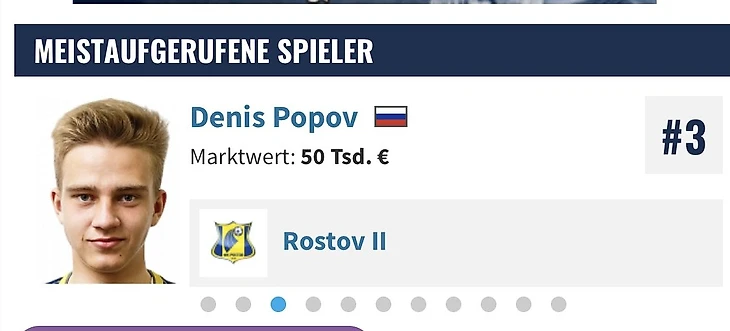 В российской версии transfermarkt вратарь Денис Попов до сих пор на первом месте. А на четвертом месте Денис Попов из киевского «Динамо» – явно попал как тезка кипера «Ростова». Еще в России часто просматривают страницы Тамаза Топурии (3 место), Тимофея Калистратова (8 место) и Данила Хромова (10 место).
