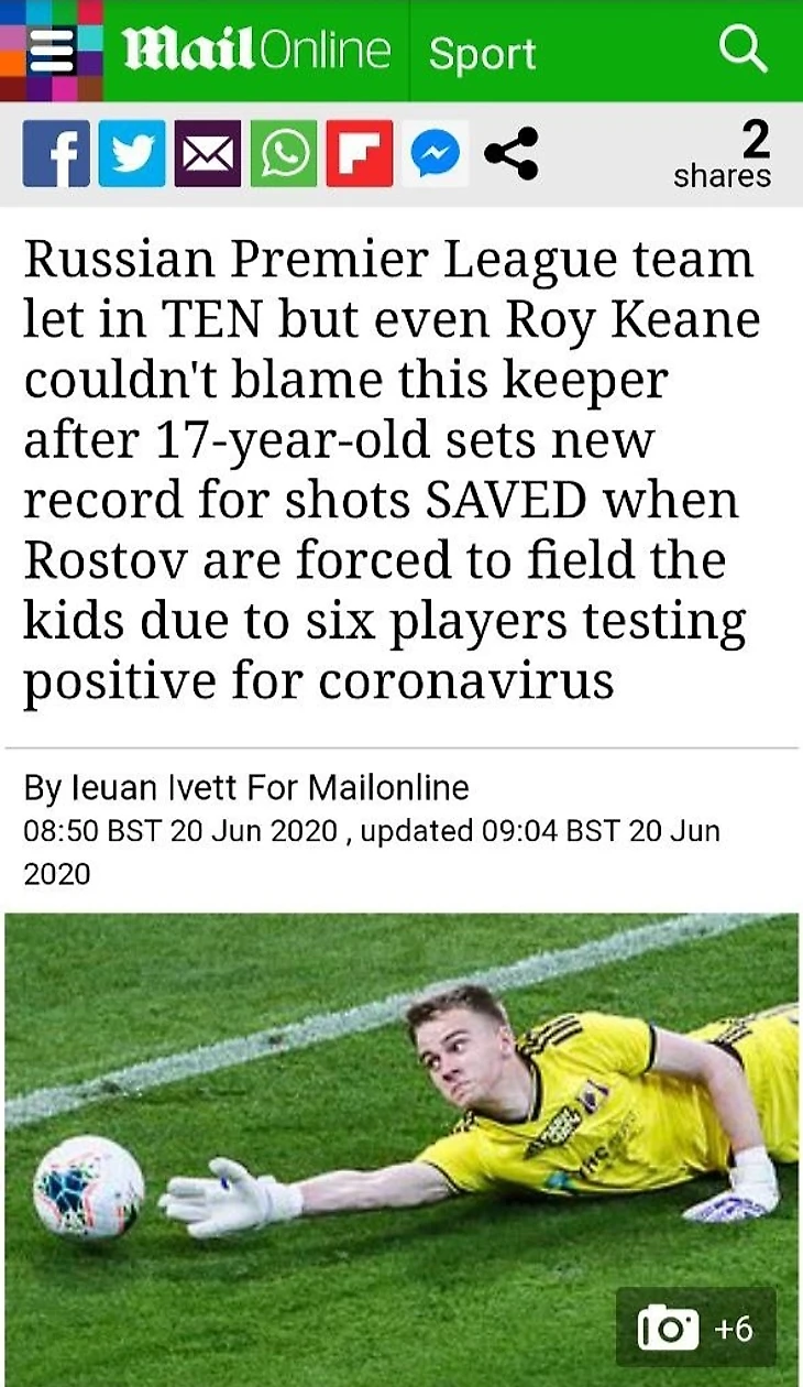 А еще про Дениса Попова (ростовского, а не киевского) написал английский Daily Mail. Статья на сайте издания называется: «Он пропустил 10, но даже Рой Кин бы его не обвинил». Это отсылка к другой истории: вчера бывший капитан «МЮ» разнес Давида де Хеа за пропущенный от «Тоттенхэма» гол.