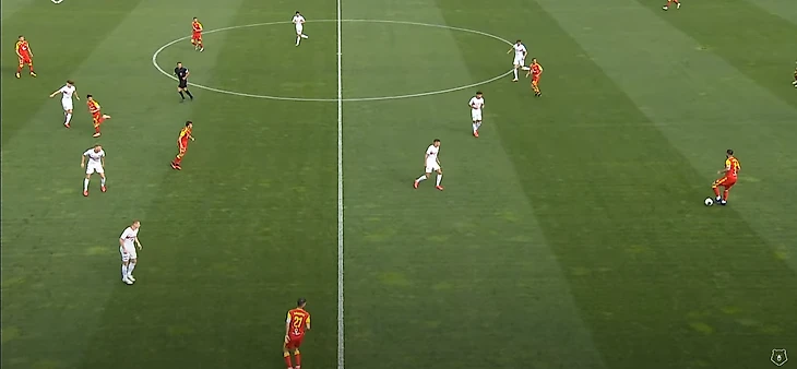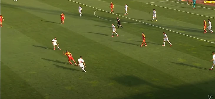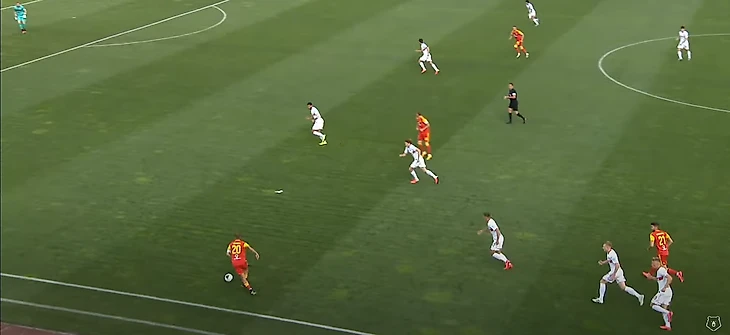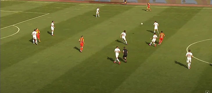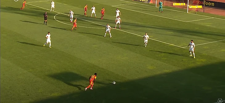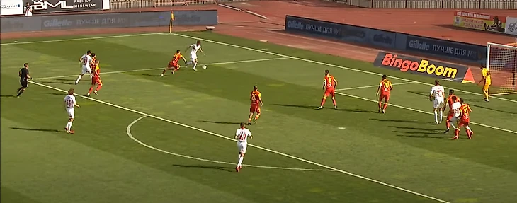 Айртон не успевает вернуться, его страхует Соболев (!), Джикия с Жиго не могут разобраться, кто именно страхует своего нападающего, в итоге Луценко проходит по флангу и отдает передачу
