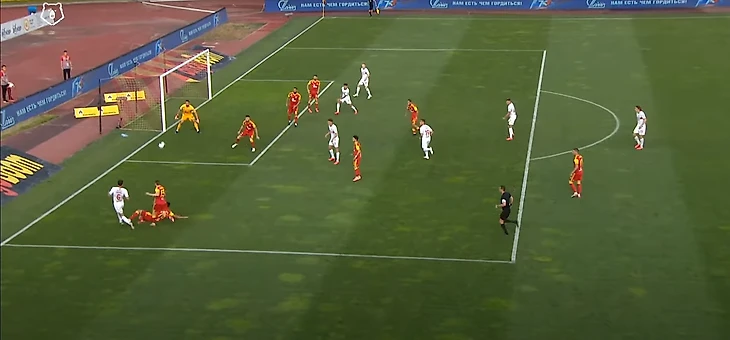 Продолжение атаки: Ковалев проигрывает Айртону практически корпус. Тройка Чаушич-Беляев-Костадинович держат центр штрафной, оставляя свободными Крала и Зобнина, Лукас катит на Соболева, чей удар блокирует Григалава