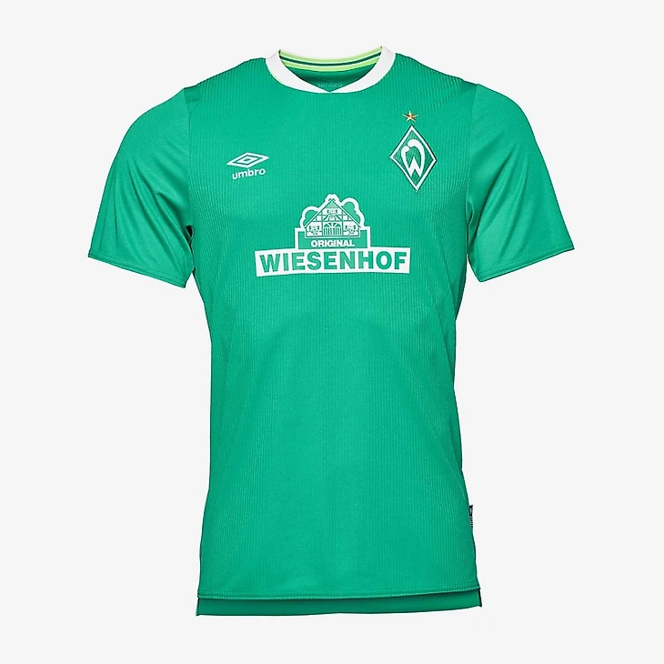 Но есть обратный пример – форма «Вердера». Второй год эмблема титульного спонсора выполнена в монохроме, что положительно сказалось на общем впечатлении от комплекта, хотя и до этого разноцветный логотип бренда несильно мешал.