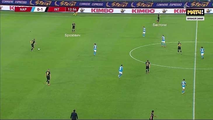 А вот то же самое на другом краю – главных ролях опорник Марцело Брозович и центральный защитник Алессандро Бастони: