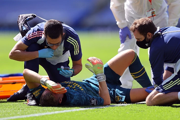 Лено вышел на перехват заброса, выхватил мяч, но в него врезался нападающий «Брайтона» Нил Мопе. Само столкновение было не жестким, но Бернд неудачно приземлился на ногу. Колено вратаря страшно вывернулось. Медицинскую помощь оказывали 5 минут.