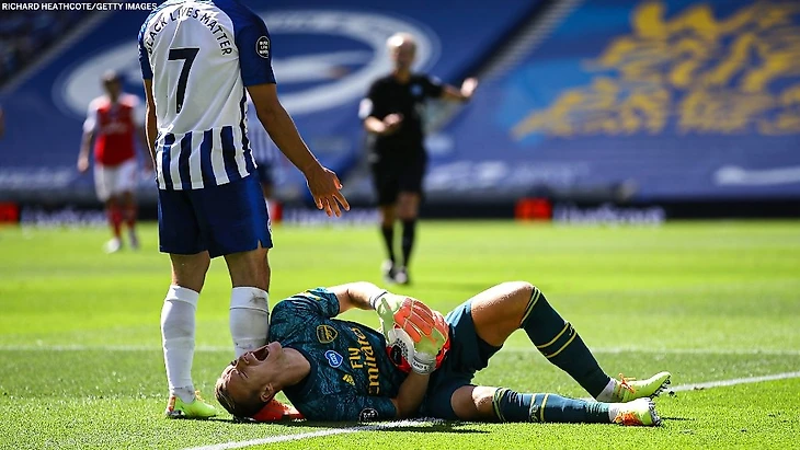 Если бы не Бернд Лено, поражение «Арсенала» от «Манчестер Сити» было бы гораздо хуже итоговых 0:3. Но в матче с «Брайтоном» не помог и он – немецкого кипера унесли с поля на носилках на 40-й минуте. Вместо него вышел Дамиан Мартинес.