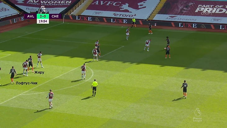 Добиться этого удалось за счет системы прессинга. Без мяча «Челси» действовал по 4-2-3-1, где Жиру прессинговал до вратаря, а тройка Лофтус-Чик/Маунт/Виллиан поддерживала.