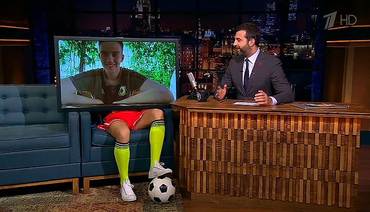 Кажется, на вопросы Ивана Урганта по видеосвязи вратарь отвечает не хуже, чем берет пенальти от Антона Заболотного.