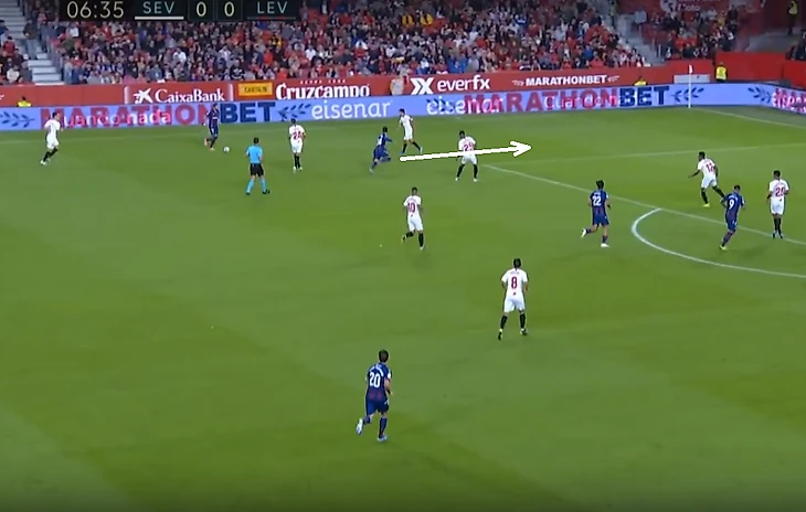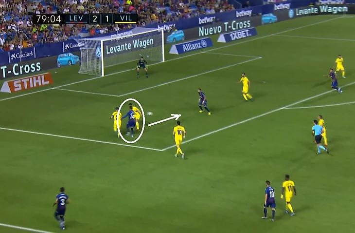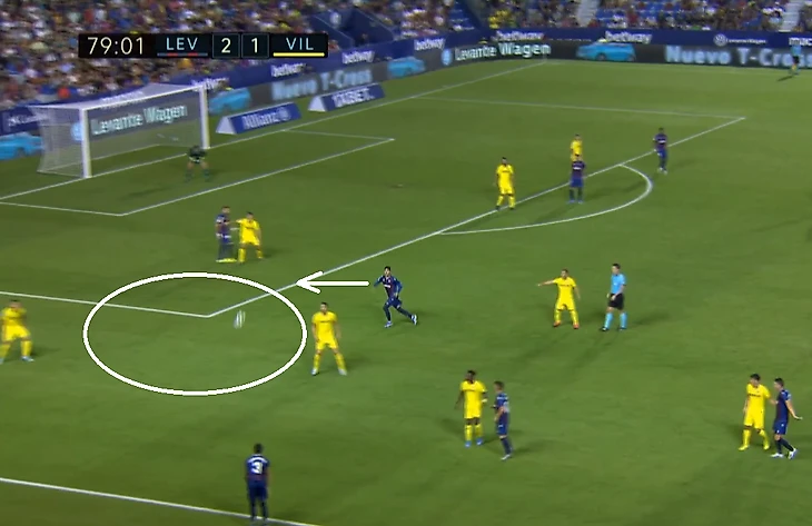 В игре с «Вильярреалом» произошел показательный момент при вбрасывании мяча из аута. Между игроками соперника образовалась свободная зона. Кампанья это заметил и направился в нее. Левый защитник Тоно снабдил Хосе своевременным пасом: