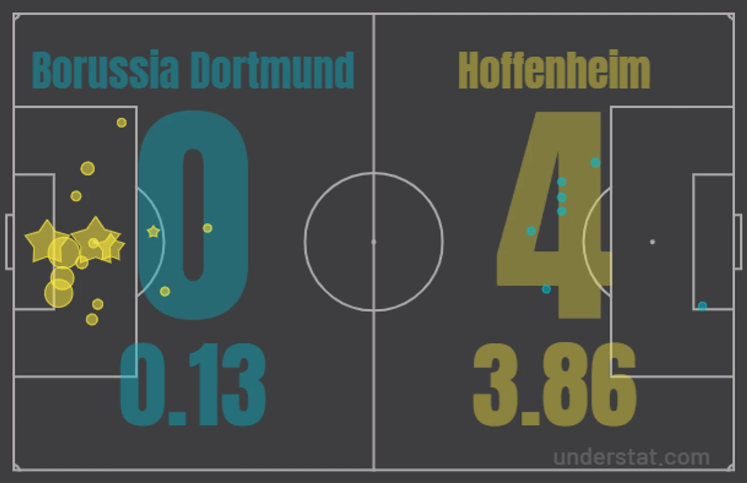 В отличие от «Баварии», дортмундцы, к сожалению, не нашли мотивации и профессионализма на последний матч. Да, «Хоффенхайм» заметно прибавил в концовке сезона, но хG хозяев в 0.13 - это ни в какие ворота не лезет. Если первые минуты «шмели», перед матчем торжественно проводившие Гетце, еще кое-как старались, то после первого гола гостей они развалились совсем. «Хоффенхайм» рвал вяловатых дортмундцев как тузик грелку и запросто мог забить даже больше четырех мячей. Героем встречи стал Крамарич, забивший все голы гостей.