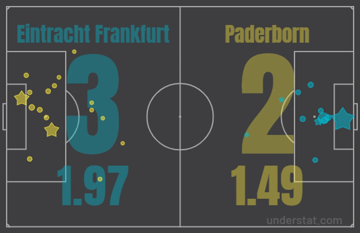 В первом тайме полное преимущество было на стороне «Айнтрахта», который с легкостью проходил сквозь защиту гостей и играючи забил два гола. Возникало два вопроса: почему «Айнтрахт» не в зоне Еврокубков и как вообще «Падерборн» попал в Бундеслигу?
