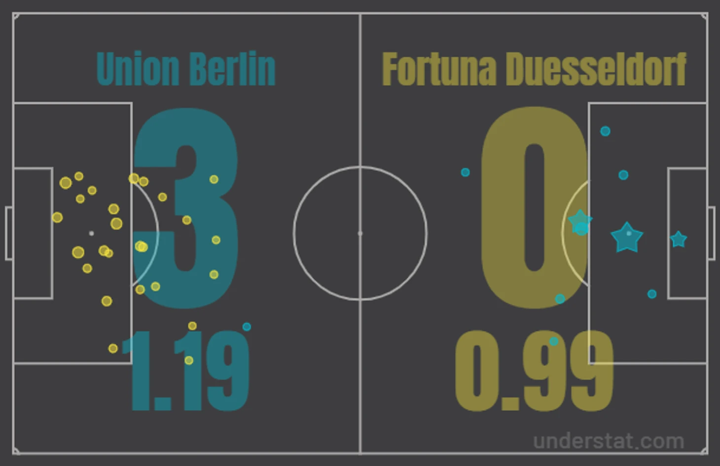 Тренерский штаб «Фортуны» занервничал - учитывая, какими темпами «Вердер» забивал в параллельном матче, ничья могла тоже не устроить команду. Весь второй тайм «Дюссельдорф» шел вперед, а забивал «Унион», к концу матча счет вырос до 3:0.