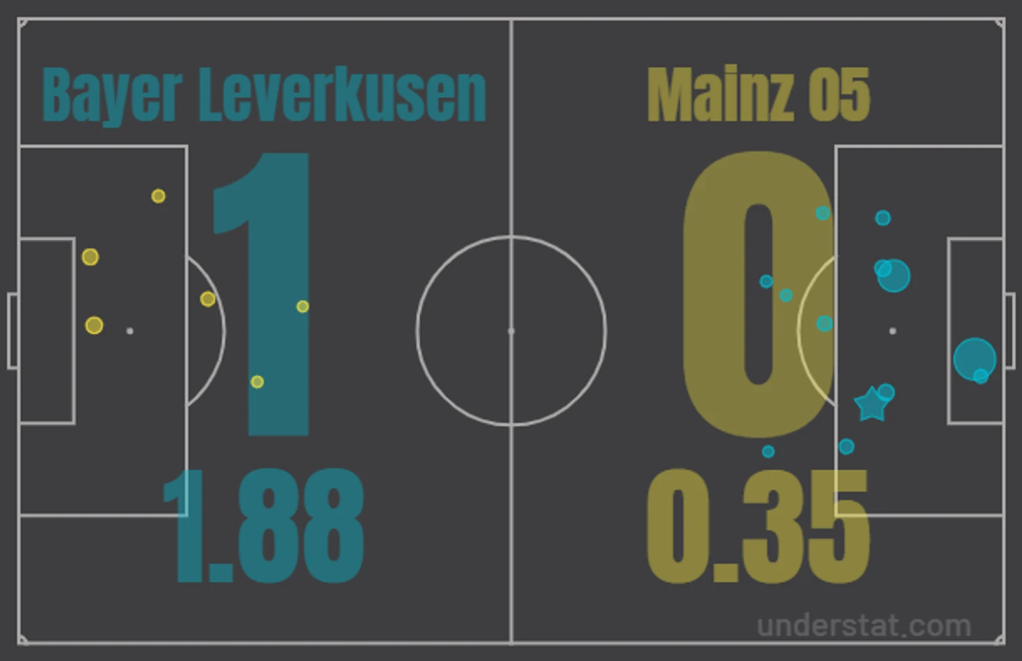 Шансы на выход в ЛЧ «Байер» практически собственноручно похоронил в прошлом туре, неожиданно проиграв «Герте». Оставалось надеяться, что та же «Герта» войдет во вкус и обыграет гладбахцев. Все это наложило отпечаток на ход игры. Леверкузенцы очень быстро открыли счет - после передачи Амири Фолланд ловко обманул защиту «Майнца» и пробил вратаря. Однако очень скоро хозяева получили известие о том, что в параллельном матче «Боруссия» тоже повела в счете... и энтузиазм быстро угас. До конца встречи команды попеременно атаковали, но настоящего нерва в игре не было. «Аспириновые» могли увеличить счет, «карнавальщики» временами были тоже близки к успеху, но встреча так и закончилась 1:0.