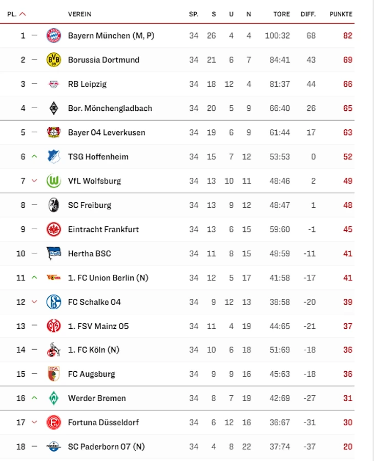С 49 очками из 51 возможных и разницей мячей +44 «Бавария Мюнхен» сыграла лучшую вторую половину сезона Бундеслиги, до этого лучший результат был в сезоне 2012-13, тогда у «Баварии» было 49 очков и разница мячей +43.
