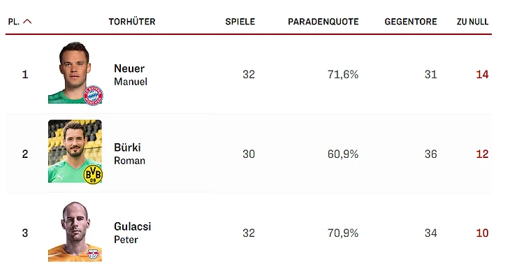 *игрок – кол-во игр – % отраженных ударов – пропущено мячей – матчи на ноль