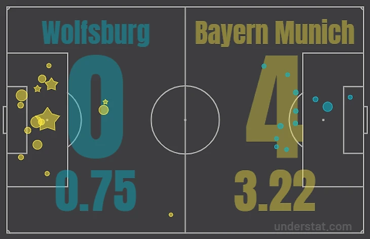 «Бавария» и в последнем матче против интересного и мотивированного соперника держала марку. В самом начале Коман убежал от защиты после проникающей передачи Горецки и открыл счет. После этого некоторое время игра шла на равных и у «Вольфсбурга» были неплохие шансы забить. Ну а потом мюнхенский каток укатал хозяев.