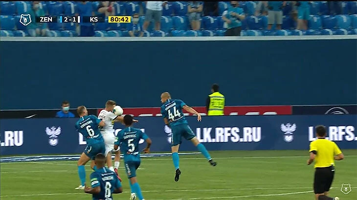Обсуждаем два пенальти и три отмененных гола у «Зенита» и «Крыльев». Перед ударом Радонича все-таки был фол: Глушенков попал себе в руку