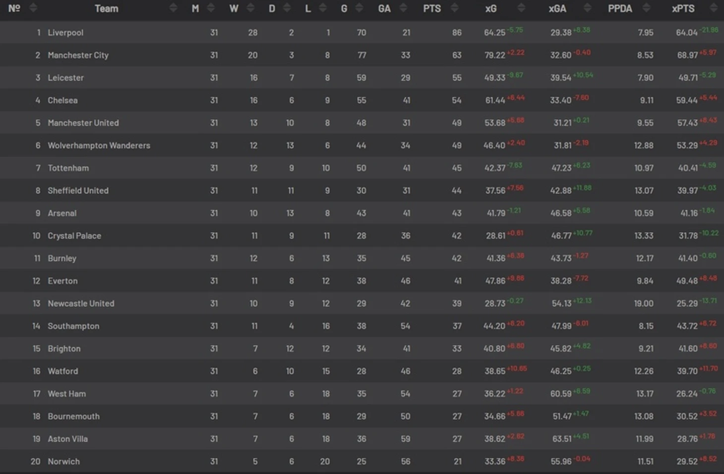 Рубикон был пройден, когда «Ливерпуль» красиво переиграл проблемный «Манчестер Сити» в 12 туре — после этого стало понятно, что «Ливерпуль» уверенно побежит к титулу и никто его не на этом пути не остановит. Разве что «Уотфорд». Так что оставался лишь один вопрос — когда «Ливерпуль» официально оформит титул. Из-за коронавируса долгожданное чемпионство воспринимается немного скомканно — однако «Ливерпуль» уже установил новый рекорд чемпионата Англии, оформив титул за 7 туров до конца. Ранее самыми быстрыми были те, кто окончательно решал вопрос за 5 туров до завершения сезона — «Манчестер Юнайтед» в 1907/08 и 2000/01, «Эвертон» – в сезоне 1984/1985, и «Манчестер Сити» – в сезоне 2017/2018. Отрыв в 23 очка — такое вы, скорее, привыкли видеть у своих команд в Football Manager, для АПЛ же подобный разрыв вообще уникальное событие.