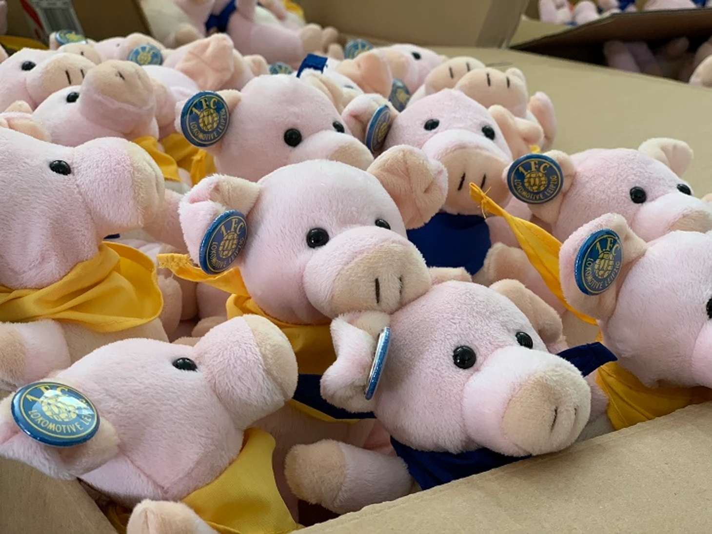 Две тысячи плюшевых свинок поддержали клуб в Германии. Теперь они поедут с командой на выезд