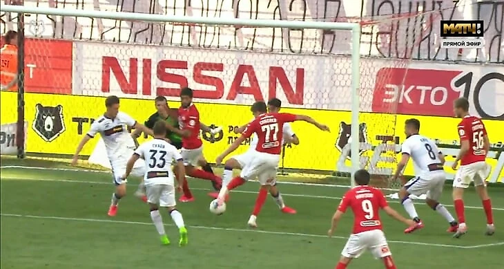 89-я минута. «Спартак» разыграл угловой, Зобнин сильно прострелил в штрафную, и мяч прилетел к Соболеву. Одним касанием он ловко обработал, а вторым прошил Беленова с трех метров. Александр помчался радоваться, но все затормозил арбитр Владислав Безбородов, который с помощью ВАР отменил гол. Но дело не в Соболеве.