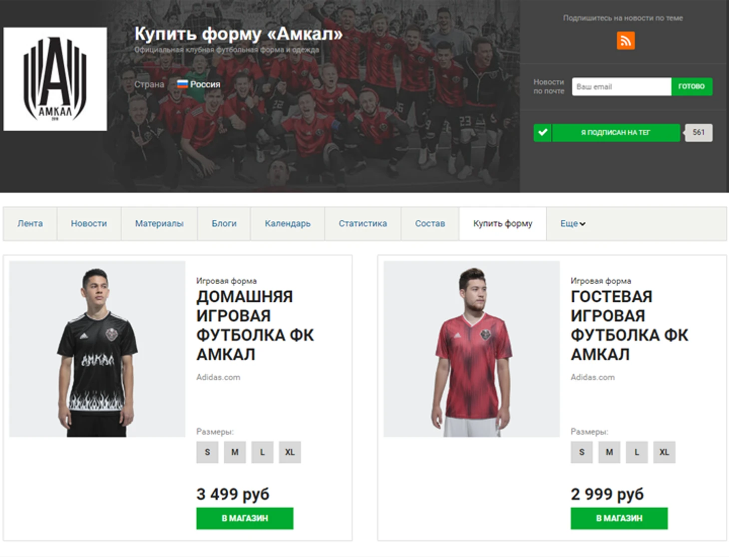 Ну и куда же без формы родного клуба? Если вы начитались статей, насмотрелись роликов и теперь просто мечтаете о футболке «Амкала» – просто купите ее! Во вкладке «Купить форму» вы найдете действующую форму команды, а также сможете перейти на официальный сайт Adidas для того, чтобы оформить заказ.