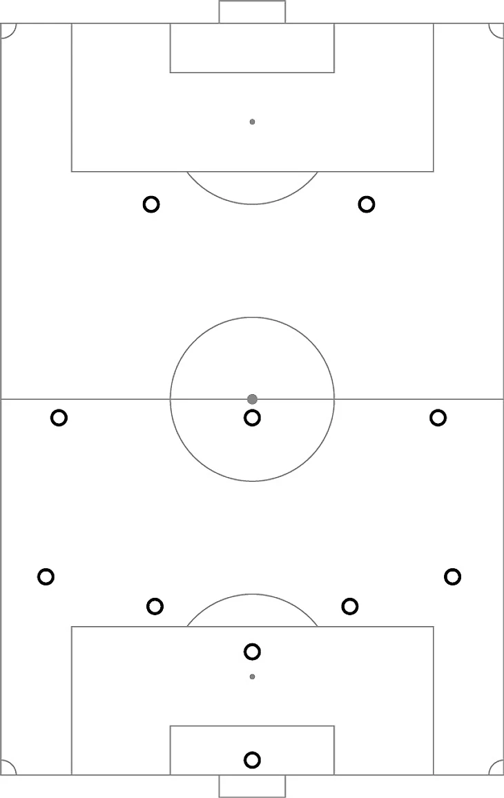 Один из крайних полузащитников должен всегда подключаться к атаке на ворота, а второй перемещается сзади, чтобы подхватить мяч, если тот будет выбит защитой соперника.