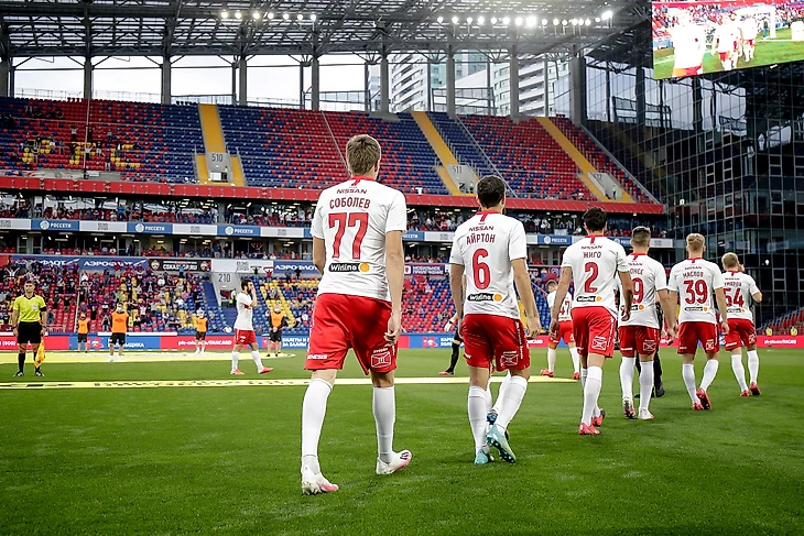 «Спартак» на этот матч выставил практически сильнейший состав. Вернулись после дисквалификации два защитника основного состава: Айртон и Джикия. Никаких сюрпризов не произошло с компонованием средней линии, учитывая, правда, что пропускал встречу с ЦСКА дисквалифицированный Крал, а Тиль продолжает лечить травму. А вот в атаке, в отличие от игры с «Уфой», вместе с Понсе вышел не Ларссон, который почувствовал усталость и был заменен во втором тайме, а Соболев. Впрочем, именно такой стартовый вариант построения атакующей линии я, к примеру, и рассматривал в одном из своих материалов в канун игры. Хотя Тедеско, с учетом этой встречи, перепробовал уже все возможные варианты в атаке, поскольку против «Арсенала» в старте выходили Соболев и Ларссон.