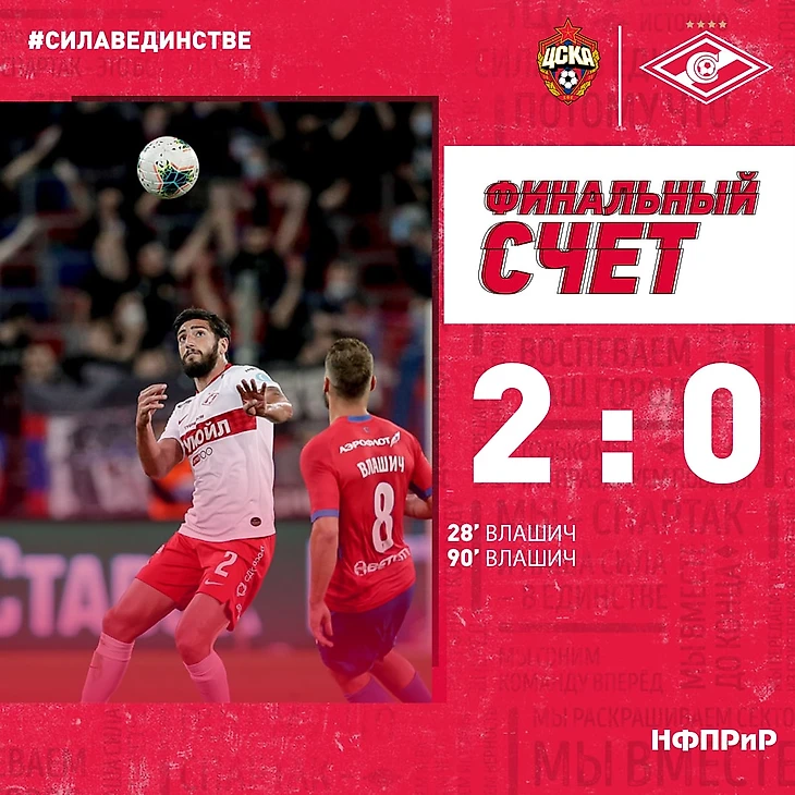 ЦСКА победил в супердерби «Спартак» - 2:0