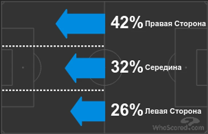 Направление атак "Спартака". Преимущественно задействован правый фланг.