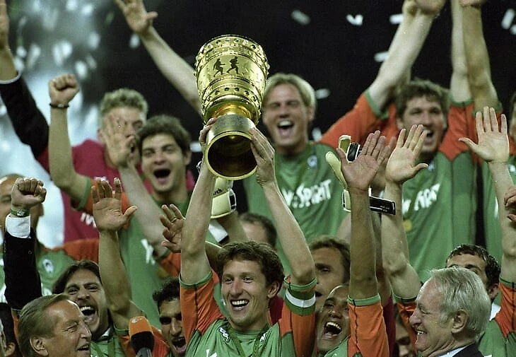 Чемпионский «Вердер» помнят хуже, чем команду, пробившуюся в финал Кубка УЕФА-2008/09 – она ближе к нам по хронологии и ярче по исполнителям, но Бундеслигу выиграть так и не сумела. А «Вердер»-2004 смог. Еще и добавил Кубок Германии.