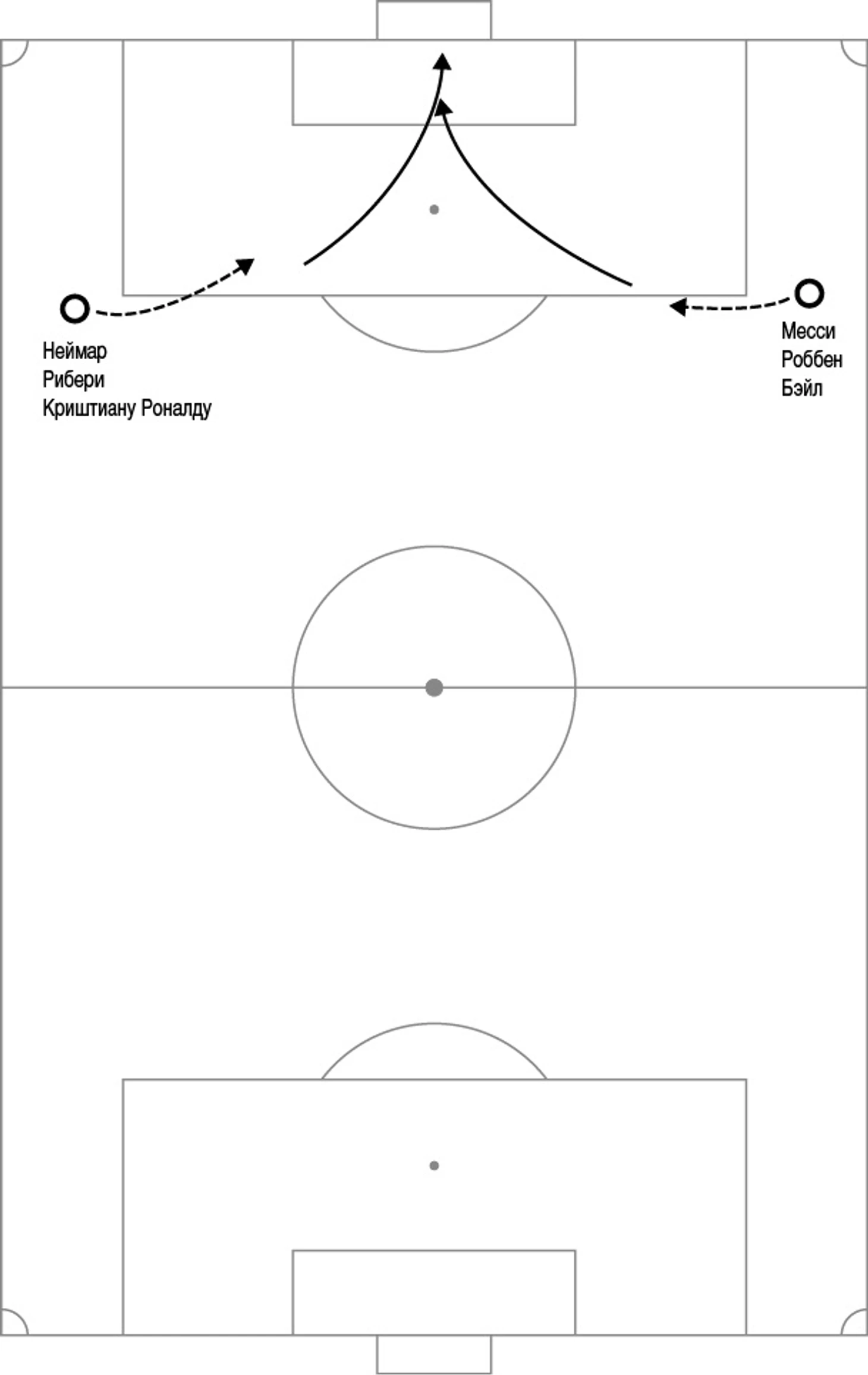 Можно предположить, что игроки подобного калибра, смещаясь в центр, будут испытывать больше давления, а ведь нападающим, чтобы атаковать, нужно пространство. Однако благодаря скорости им имеет смысл смещаться в центр: начав дриблинг, они могут пройти под слабую ногу оппонента и тем самым выгадать себе полметра для удара по воротам.