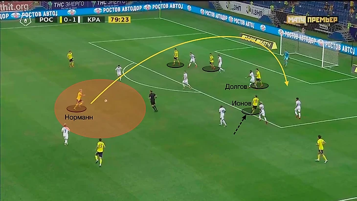 Помимо гола нельзя сказать, что сам «Краснодар» много создал после таких выносов – пара неплохих подходов. Здесь, конечно, не хватало Ари. Однако, отсутствие больших собственноручно созданных проблем у своих ворот - уже большое дело. К тому же с мячом «Ростов» традиционно не так опасен, как в моменты прессинга и сразу после него.