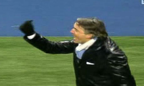 Даниэль Тэйлор сообщает о возможном наказании главного тренера лидеров Премьер-лиги: «Роберто Манчини рискует нарваться на дисциплинарное наказание от FA, если он и в будущем продолжит размахивать воображаемой карточкой, призывая к предупреждению или удалению одного из игроков соперника. Главный тренер «Манчестер Сити» продемонстрировал данный жест в предыдущих четырех матчах дважды, несмотря на принесенные извинения за первый такой случай и обвинения за то же самое Уэйна Руни после недавнего поединка Кубка Англии против «Манчестер Юнайтед».