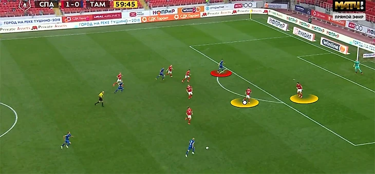 Хотя всё это даже не самое страшное. То, что случилось потом, вообще не поддаётся объяснению. «Спартаку» удалось чуть затормозить чужую атаку и вернуться, в конечной фазе в штрафной находился только один игрок «Тамбова» — Чуперка. Одному из защитников, Джикии или Айртону (они оба бежали рядом), нужно было просто сместиться в сторону Чуперки, а другой тогда спокойно выдвинулся в сторону навешивающего Рыбина.