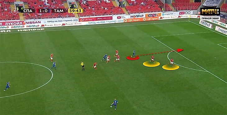 Почему именно Жиго? Потому что он лучший защитник «Спартака» по включениям, просто раньше делал это спонтанно, а теперь в рамках системы. Также он объективно лучше других умеет отдавать разрезающие передачи и мягкие забросы в штрафную. Благодаря этому решению «Спартак» против низкого блока смог чаще начинать атаки не через фланги и полуфланги, как раньше, а через центральную зону. Меньшее давление оказывалось и на Крала – и чешский полузащитник тоже чаще встречался с мячом.