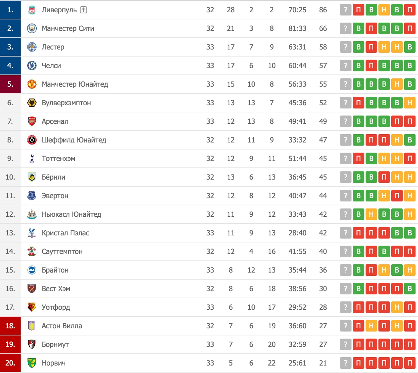 Добрый день, дорогие читатели и любители британского футбола! Вчерашний день подарил нам два гола от «Борнмута», первую победу «Лестера» после рестарта, реакцию Лэмпарда на поражение, третий(!) клиншит в АПЛ от «Арсенала» с его легендарной защитой и отсутствием Лено и очередное поражение «Норвича», которое, к сожалению, судя по всему, окончательно ставит крест на амбициях команды сохранить прописку в АПЛ. Давайте посмотрим, как изменилась таблица после прошедших матчей: