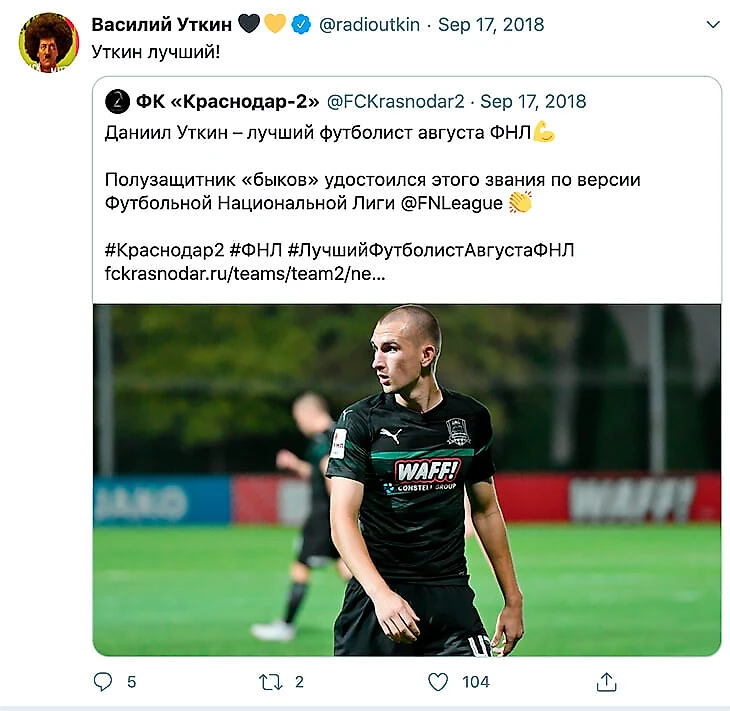 Их связь и в самом деле проявлялась. На следующий день после того, как ютуб-канал Василия Уткина пробил 300 тысяч подписчиков (сейчас – 527 тысяч), Даниил забил «Тамбову». А на той же неделе – еще и в ворота «Чертаново» за «Краснодар-2» в ФНЛ.