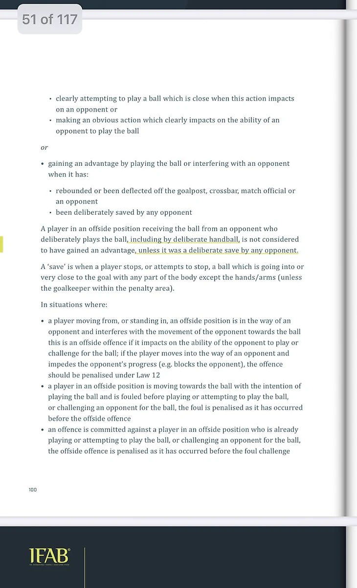 Очень полезная статья, т.к. Марсело в эпизоде с пенальти был с мячом, значит непосредственно был участником игры с мячом, Гарсия был без мяча, в 25 метрах от него, в эпизоде не участвовал, в игру не собирался в ступать. Намерения вступить в игру у него не могло быть в принципе, поскольку мяч был далеко и даже в его сторону не двигался.