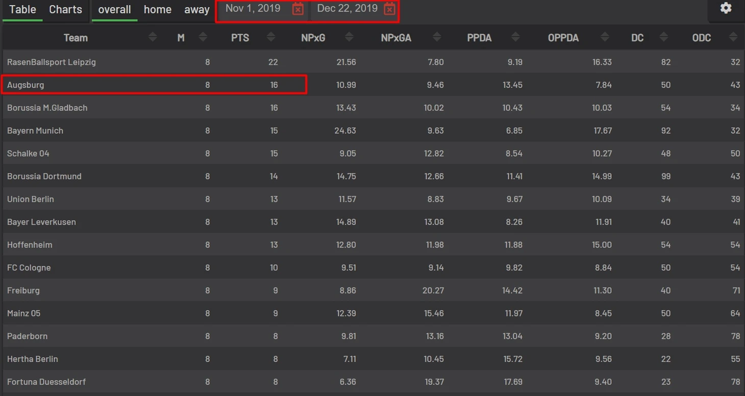 "Аугсбург" второй год подряд занимает 15 место в таблице (спасительное). На самом деле при Шмидте у "Аугсбурга" был отличный период: с ноября по декабрь 2019 года, команда набрала 16 очков в 8 матчах - это второе место в чемпионате.