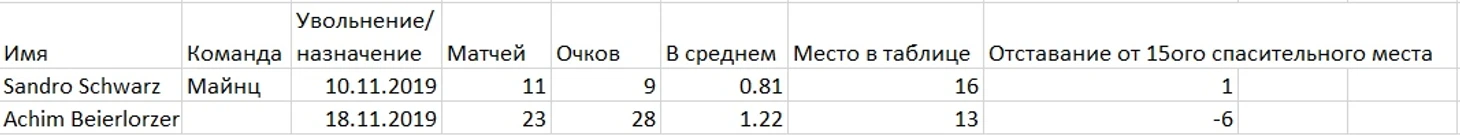 В итоге 4 новых тренера из 6 смогли улучшить положение в клубах.