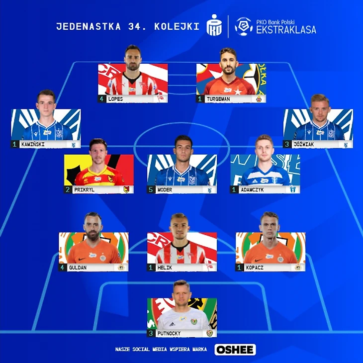 Лучший игрок тура: Камиль Юзвяк из "Леха Познань". Лидер своей команды по показателю InStat, сделавший оба гола в горловой игре против "Легии", которая почти гарантировала "железнодорожникам" выход в квалификацию Лиги Европы.