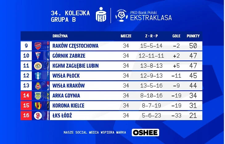 "ЛКС" уступил "Висле" 1:2 в домашнем матче. Дубль на свой счёт записал Алон Тургеман. "Белая Звезда" официально сохранила себе место в элите на будущий сезон, в чём никто и не сомневался. Болельщикам, игрокам и тренерскому штабу необходимо забыть этот сезон как страшный сон и включится в борьбу за первую восьмёрку в кампании 2020/2021.